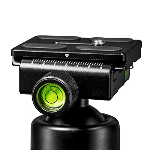 Mit 50 mm Schnellwechselplatte (Arca-Swiss kompatibel), 360° Panorama-Funktion, Hochformatkerbe und drei Wasserwaagen