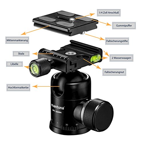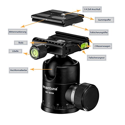 Mantona Onyx 8 Kugelkopf (M1-3008A) Arca-Swiss kompatible Schnellwechselplatte 50 mm, professionelle Verarbeitung fur DSLR, spiegellose Kamera, Systemkamera, Digitalkamera, Camcord