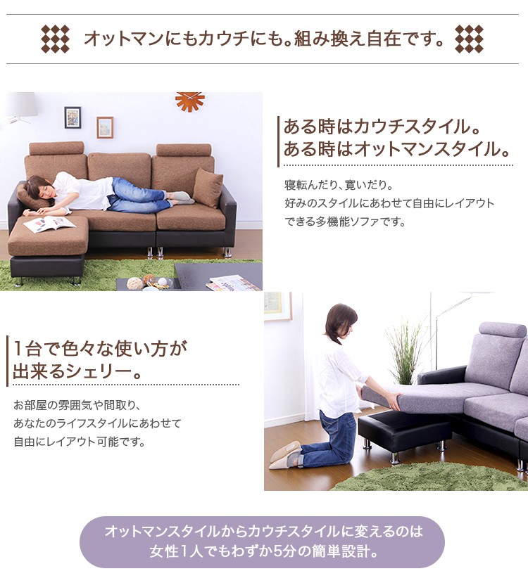 3人掛けカウチソファ【シェリー-Sherry-】