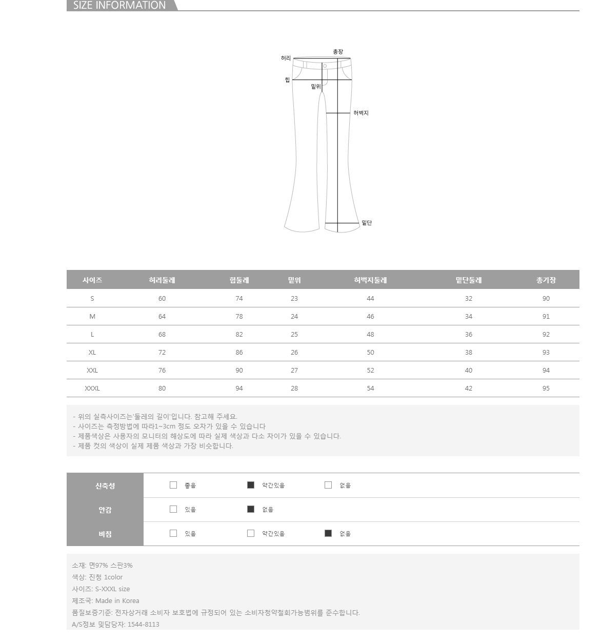 컬러는 진청 1color로 구성되어 있으며,