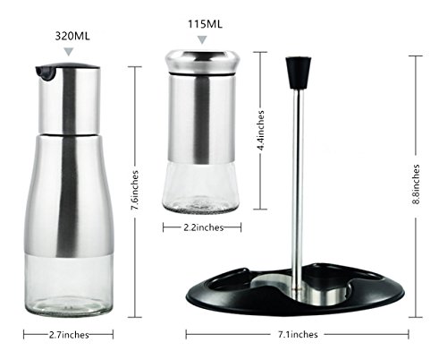 - Oil and Vinegar hold approx.10.8oz/320mL Salt and Pepper hold approx.3.9oz/115mL