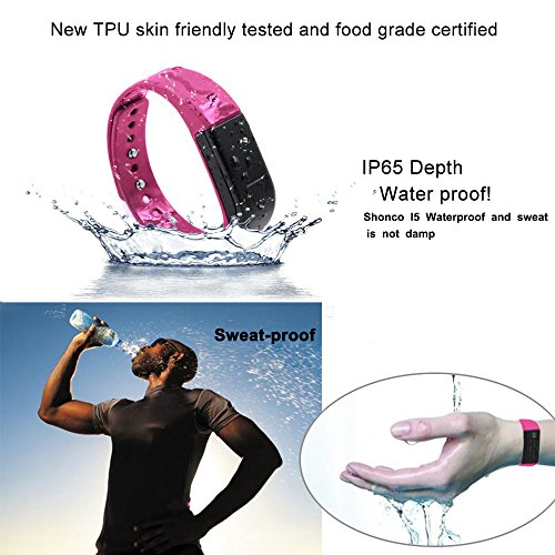 FITNESS TRACKER SMART WRISTBAND, SHONCO I5 BLUETOOTH WIRELESS ACTIVITY FITNESS TRACKER SMART BRACELET WITH PEDOMETER TRACKING HEALTH SLEEP MONITORING FOR IOS7.0 AND ANDROID 4.3 ABOVE PHONE - PINK