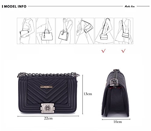 This cross-body bag measures 8.6"L x 3.9"W x 5.1"H inches. It¡¯s a classic medium size handbag which is very famous and sought-after around the world. This style has became very popular by using a similar formula to the originals: versatile flap shoulder bag structure + distinctive lock = handbag magic. Also, the middle quilted pattern flap and fashion chain + leather shoulder strap make it more classic and lovely.