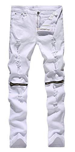 -. Feature : Materials:Denim,Cotton / Five-pockets design,Open Knee With Zipper,Holes Design,Skinny Fit Jeans,Hipster Skinny Slim Straight Jeans,Fashionable Ripped Holes Denim Jeans / US Size (it's fit for skinny men,please read the Clothing Size Chart carefully before you buy it.) / 1-2 business days for FBA delivery / 7-15 business days for Non-FBA delivery