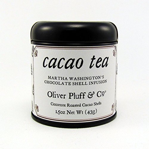 -. Binding : Misc. -. Brand : Oliver Pluff -. EAN : 0837654912942 -. Feature : Cacao shell tea is a chocolate shell infusion that was brewed and served at breakfast by Martha Washington / Shells of the cocoa nut are infused in hot water / All Natural, Sugar-Free / Packaged by Hand in Charleston, South Carolina by Oliver Pluff & Co. -. IsAdultProduct : 0 -. Label : Oliver Pluff & Company -. Manufacturer : Oliver Pluff & Company -. PackageQuantity : 1 -. ProductGroup : Grocery -. ProductTypeName : GROCERY -. Publisher : Oliver Pluff & Company -. Studio : Oliver Pluff & Company -. Title : Martha Washington's Cacao Shell Tea - 1.5 oz Tin -. UPC : 837654912942