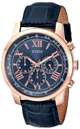 가이아《스》 GUESS Mens U0380G5 Iconic Blue Chronograph Watch with Blue Dial Rose Gold-Tone Case & Genuine