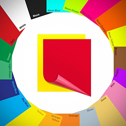 - This package includes 20 sheets, sized 12"X10", one in each of the following vibrant colors: white, black, red, green, light green, sky blue, royal blue, lemon yellow, orange, yellow orange, silver, gold, pink, purple, brown, neon yellow, neon orange, neon pink, neon green, neon blue