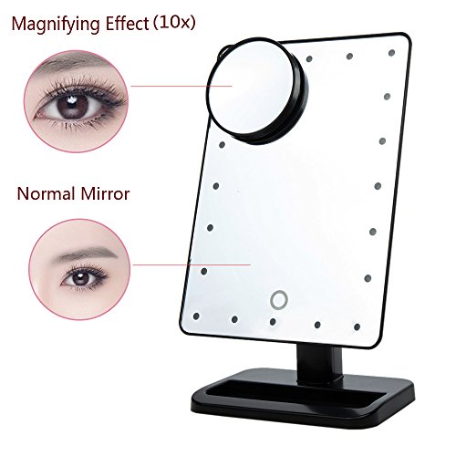 LED Makeup Mirror / Lighted Makeup Mirror - 20 Lights Bulbs Table Vanity Makeup Mirror with Touch Screen Dimming, 180° Rotation and Detachable 10X...
