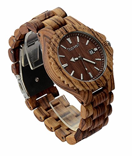 Each watch has its own unique and beautiful wood grain with extra date calendar function.