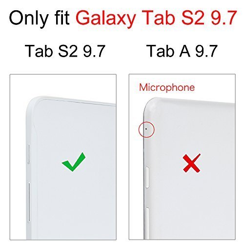 [Description] Specifically designed for Samsung Galaxy Tab S2 9.7 Tablet with magnet built-in to support auto sleep/wake feature (Auto wake/sleep works with case ONLY). Magnetically detachable ultra slim 7mm and light weight bluetooth keyboard ranges 10M. Integrates seemlessly with your Tab S2 9.7 and other Bluetooth enabled Android devices. Ultra-slim design case adds maximum protection with minimal bulk. Adjustable stand securely holds your Tab S2 9.7 in landscape mode. Durable PU leather cover with anti-slip rubber-lined interior. Premium polycarbonate shell locks your tablet in place and absorbs drops and bumps. Real ``hard`` laptop style keyboard with high end ABS material. Not cheap silicone keyboard as other cases in market. A spring mechanism underneath each key ensures a tactile response with every stroke_ helping you to type faster and with less error than on a touchscreen. Available in a variety of bright and fun colors.