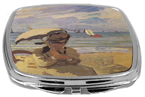 Rikki Knight Compact Mirror, Claude Monet Art Camille Monet on The Beach at Trouville, 3 Ounce
