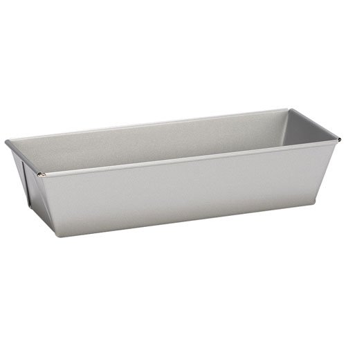 - Rectangular loaf or cake pan, length 9-7/8 inches, top width 4-5/16 inches, Depth 2-3/4 inches, non-stick, European made