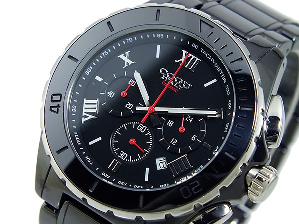 コグ COGU クロノグラフ メンズ 腕時計  商品仕様:(約)H43×W43×D14mm(ラグ、リューズを除く)、重さ 約179g、腕回り最大 約19cm、ベルト幅(ラグ付近)約22mm、(バックル付近)約22mm ステンレス(ケース)、セラミック(ベルト) 専用BOX、取扱説明書、保証書