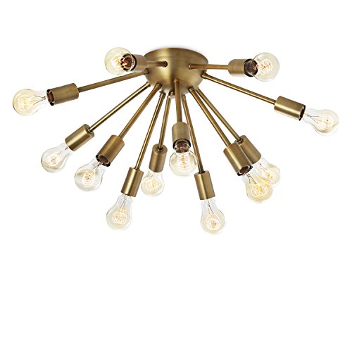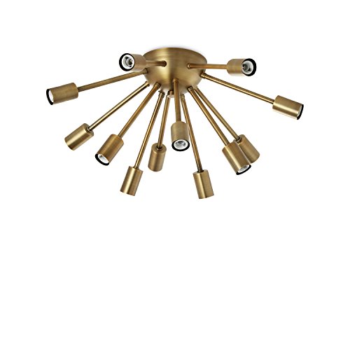 Description: One 12-socket brass ceiling flush mount fixture with matching stem and canopy. A perfect way to add a contemporary addition to any space.