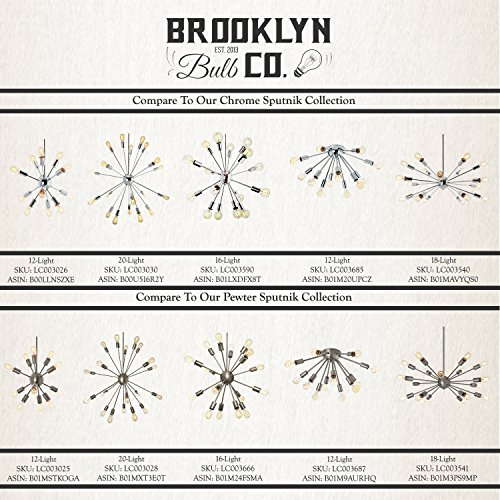 Additional information: E12 socket, 40W // 120V MAX per bulb (Recommended: 40 Watts per Socket x 16 Sockets). Bulbs are not included. We would recommend using Brooklyn Bulb Co's Bulbs. The main image features our classic vintage-styled Mini Coney Island A15 bulb (ASIN: B00NERO7PU) to enhance this fixtures vintage appeal.