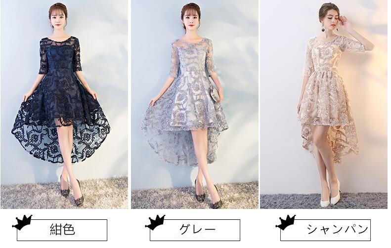 ★素材:ポリエステル&レース★伸縮性:なし★厚さ:普通 ★カラー:グレー/紺色/シャンパン色(写真参考)   ★サイズ(cm):XS:バスト77 ウエスト60 前丈85 後ろ丈115S:バスト80 ウエスト63 前丈85 後ろ丈115 M:バスト83 ウエスト66 前丈85 後ろ丈115L:バスト86 ウエスト70 前丈85 後ろ丈115 XL:バスト90 ウエスト73 前丈85 後ろ丈115 XXL:バスト93 ウエスト77 前丈85 後ろ丈115