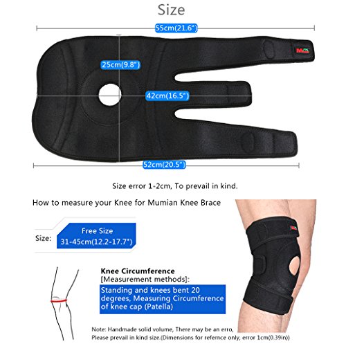Features: 1. Open knee protection 2. Adjustable and durable 3. EVA gasket design, very comfortable 4. Taiwan imported Velcro, edge soft mesh cloth, more durable 5. Built-in bending of the dual-spring, can help the knee stability and absorption of impact, the effective protection of the knee site Applicable: Knee pain and discomfort, mild strain / sprain, knee fatigue, patellar instability, fitness, sports and so on various Specifications: Brand: Mumian Model: B05 Color: Black Material: 65% Neoprene 30% Polyester 5% nylon Size: Free Size, Fit for Knee Circumference 31-45cm Quantity: 1 Pc Note: Please allow 1-3mm error due to manual measurement. pls make sure you do not mind before you bid Due to the difference between different monitors, the picture may not reflect the actual color of the item. Thank you! Package includes: 1 Pc x Knee Sleeve 0