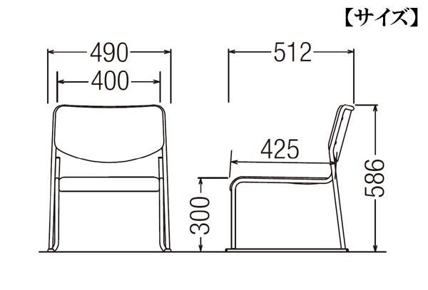 | 素材・材質 | フレーム/Φ15.9丸パイプ・粉体塗装、25×12楕円パイプ 背/ポリプロピレン樹脂成型品、芯材:ハードボード・ウレタンフォーム 座/ポリプロピレン樹脂成型品、ウレタンフォーム 張地/ビニールレザー(ブラック) |