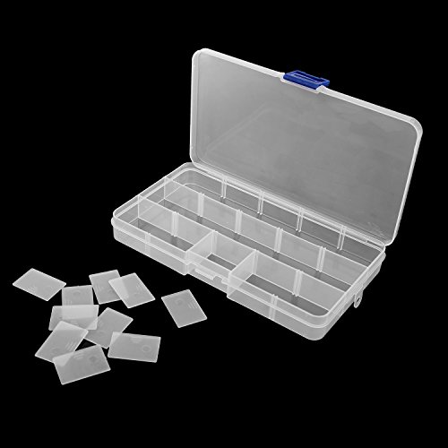 Studio : Kakaxi Publisher : Kakaxi Binding : Office Product Product Description 15 INDIVIDUAL REMOVABLE DIVIDER COMPARTMENTS, YOU CAN STORING SOMETHING IN SMALL SIZE FOR WHAT YOU WANTS PRODUCT DESCRIPTION -This is a clean practical jewelry storage box organizer, which is made of durable hard plastic, and here contains 15-grids and 14 removable dividers, only one grid can't be removable, this storage box use for storing earrings, rings, or other electronic components, spare parts, clothe sing accessories, and some variety of pills and a variety of small drugs. PRACTICAL AND CONVENIENT -For your convenient use, we have design a hook with it, you can hang it up by use this hook. and their light and clean features are also convenient for you to carry with. -A blue buckle design for your easy daily use, easy to open, easy to close. -This transparent clean storage box make you quickly identify items in the box. BRIGHT COLOR -We have prepared 4 beautiful colors for you, pink, transparent, blue, purple, each of them are clear and attractive, you may feel it's a beauty and practical storage box. MATERIAL -This clear storage box are made of durable hard plastic. DIMENSION -Total size (L * W * H)): about 6.92*4.01*0.86 inches each grid size: 1.29*1.18 inch PACKAGE -Pack of 4 jewelry storage box, each box is individual package. FULL REFUND 100% money back guarantee for your satisfactory shopping experience, please contact us if for any reason you are unhappy with the box, and we are so glad to help you solve it quickly and efficiently! 0