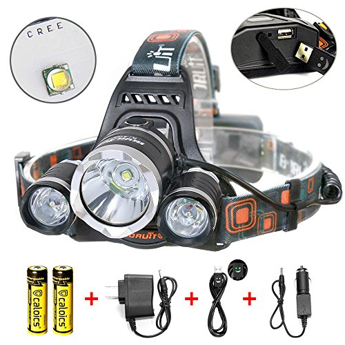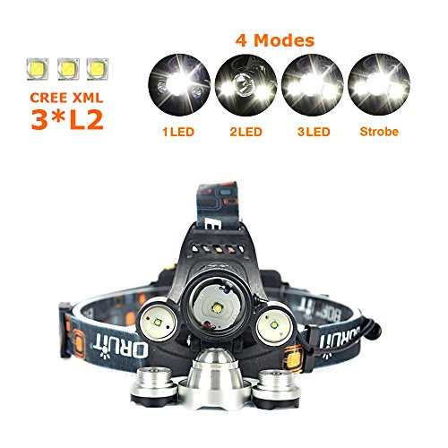 Boruit® Headlamp 5800 Lumens with 3*Cree XML L2 LED Super Bright Flashlight for Hunting, Camping, Night Fishing, Running, Reading, Kids, Perfect Hands-free Rechargeable & Waterproof Work Light