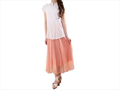 -. Title : Libero レディーズ ふんわり チュールスカート ロング丈 裏地付き 両用 マキシ丈スカート