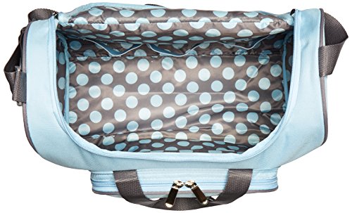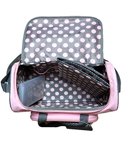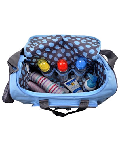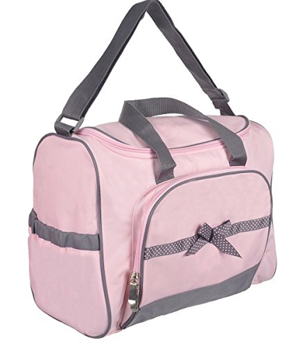 Studio : Baby Essentials Publisher : Baby Essentials Binding : Baby Product Product Description Soft hues of pink and grey come together in this stylish bag that's a delight to carry. Trimmed to perfection with touches of grey and polka dot ribbon, it earns high marks for fashion and function. The roomy interior holds plenty, and, because convenience is key, there are 4 external pockets for items you want nearby. The dotted interior and changer are wipe- clean, and extras include a refillable wipe case, three elastic bottle holders, two mesh pockets and a handy, printed pouch. And, with an adjustable shoulder strap leaving your hands-free, it's the how-to bag for traveling with baby. 0