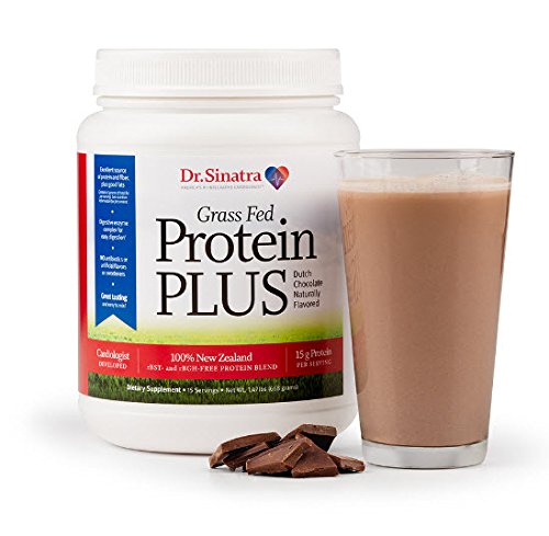 -. Feature : 15 GRAMS OF NON-GMO, HORMONE-FREE PROTEIN WITH 9 ESSENTIAL AMINO ACIDS FOR A COMPLETE PROTEIN SOURCE. Sourced from 100% New Zealand grass-fed, non-GMO, hormone-free dairy cows, Grass Fed Protein Plus protein powder with digestive enzymes features a blend of whey and casein for a long-lasting source of protein, including 9 essential amino acids. PLUS, fiber and metabolizing dietary healthy fats, as well as digestive enzymes for easy digestion-something you won't find in ordinary protein powders! / EASY TO MIX AND DIGEST. DELICIOUS, DUTCH CHOCOLATE FLAVOR! The body can have difficulty digesting a large amount of protein. Dr. Sinatra included a digestive enzyme complex to help break down protein, support easy digestion, and help with better nutrient absorption. This protein powder with digestive enzymes is smooth, creamy, easy to mix and digest, and has a rich, chocolatey flavor, without any artificial flavors or sweeteners! It's so tasty, it's almost treat-like! / 6 GRAMS NON-GMO FIBER KEEPS YOU FULL AND REGULAR, WITHOUT CAUSING GAS OR BLOATING. Today's American diet is packed with carbs, unhealthy fats, and sugars, making it difficult to get enough protein and fiber. Nutriose® Maize Fiber gives you the help you need to reduce appetite, increase feelings of fullness, promote regularity and overall gastrointestinal health and support cardiovascular health, without the gas, bloating, and gritty texture commonly experienced with other fiber supplements. / 5 GRAMS MEDIUM CHAIN TRIGLYCERDIES (MCTS) (HEALTHY FATS) FOR A QUICK ENERGY SOURCE. Dr. Sinatra included 5 grams of MCTs to absorb rapidly into the blood stream, helping to give you a ready and lasting supply of energy for your day. Whether you're playing recreational sports, going to the gym, or just doing your daily activities, these healthy fats are also easier for your body to digest, more quickly burned as energy, and less likely to be stored as fat-talk about a triple threat! / FREE FROM RBST AND RBGH, SOY, ANTIBIOTICS, ARTIFICIAL FLAVORS OR SWEETENERS. Formulated by America's #1 Integrative Cardiologist. Stephen Sinatra, MD, FACC, FACN, has been on the front lines of cardiac health for more than three decades. Just mix two scoops of this protein powder with 6-8 ounces of cold water, milk, or your favorite beverage. For a thicker, smoother drink, add crushed ice and fruit. Triple-tested for quality, safety, and purity. 100% SATISFACTION GUARANTEE