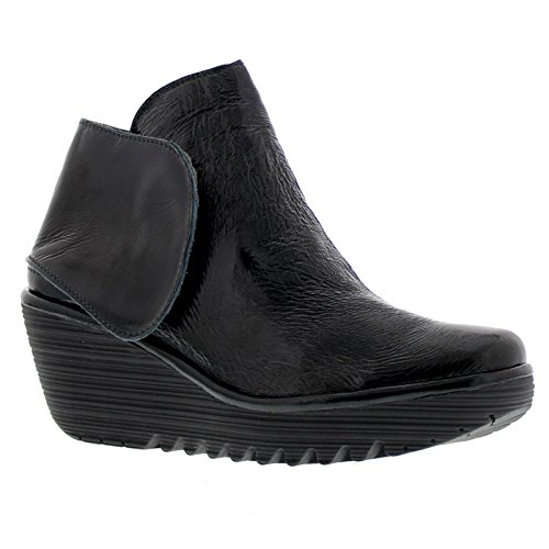Studio : Fly London Publisher : Fly London Binding : Apparel Product Description Made to add style to any outfit, the Fly London gorgeous Yogi platform boots for women's are a must have this summer. Perfect for dressing up or down these reef coloured wedge boots are made from a luxor leather upper with a velcro strap at the back of the boots for that perfect fit.The textile lining of these wedge boots feels soft against your skin and the non-removable padded leather insole provides cushioning with every step. These velcro strap boots feature a durable platform wedge rubber sole with slip-resistant grooves. The heel is approximately 6cm to provide you with a height boost without compromising on comfort. 0