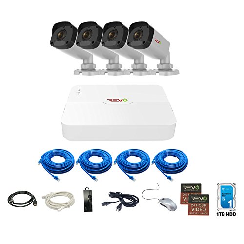 Revo America Ultra 4CH 4K H.265 NVR, 1 TB Surveillance Grade HDD, Remote Access, with 4x 1080p Indoor/Outodor IR Bullet Cameras