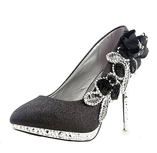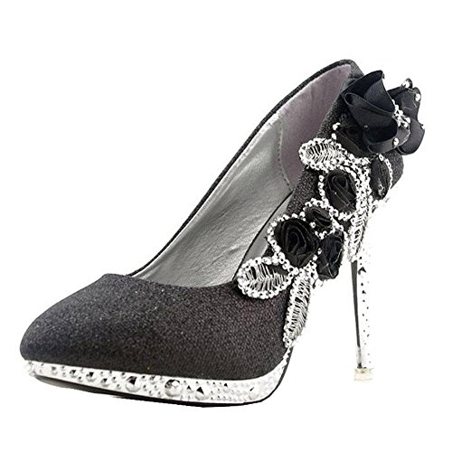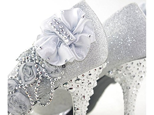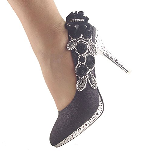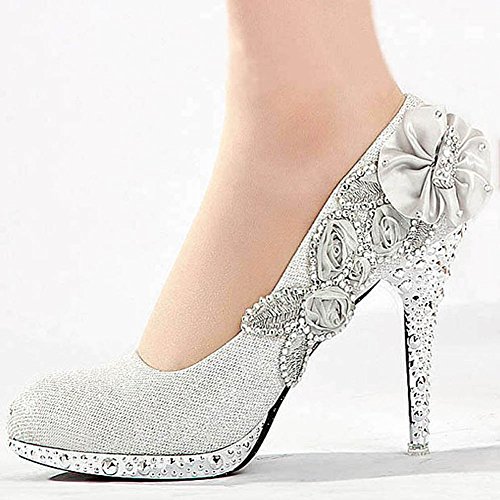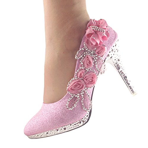 Product DescriptionFlower Stiletto Pump,Glitter Pearls Wedding Shoes0