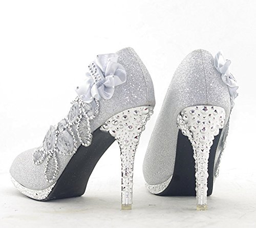 Getmorebeauty Women's Silver Lace Flower Pearls Closed Toes Wedding Shoes
