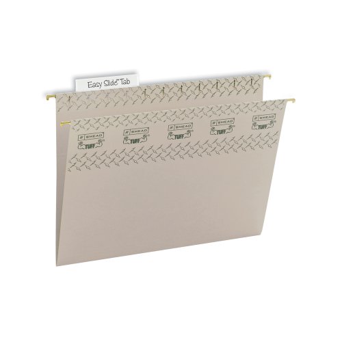 -. Title : Smead TUFF Hanging File Folders with Easy Slide Tab, 1/3-Cut Sliding Tab, Letter Size, Steel Gray, 18 per Box (64046)