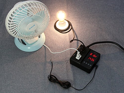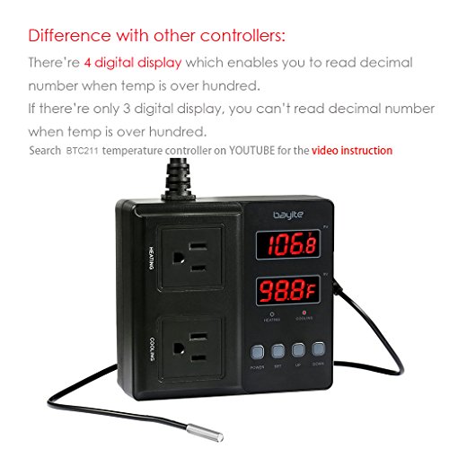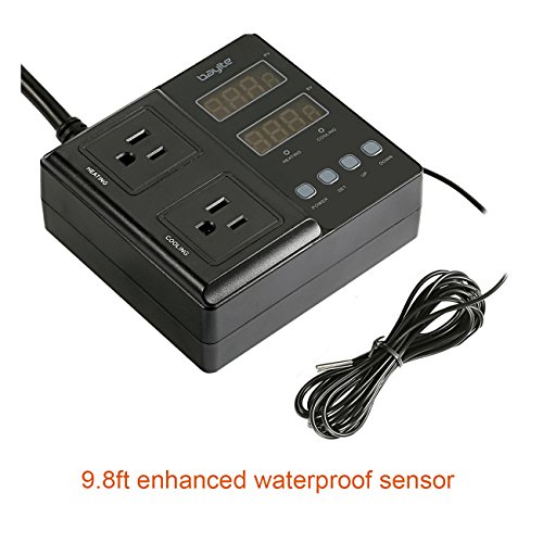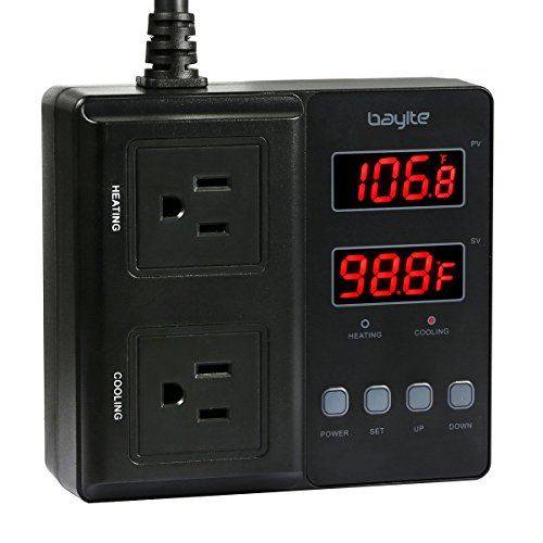 bayite Temperature Controller 1650W BTC211 Digital Outlet Thermostat, Pre-wired, 2 Stage Heating and Cooling Mode, 110V - 240V 15A