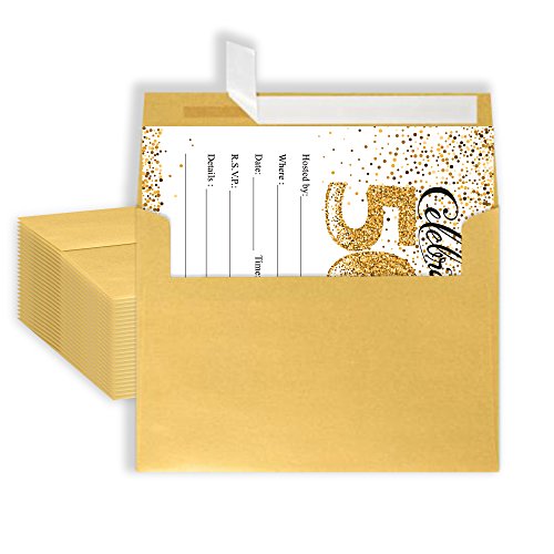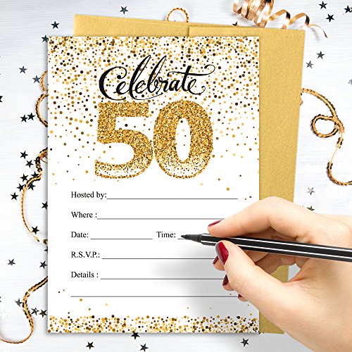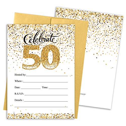 50th Birthday Party Invitation Cards with Envelopes, 25 Count (White and Gold)