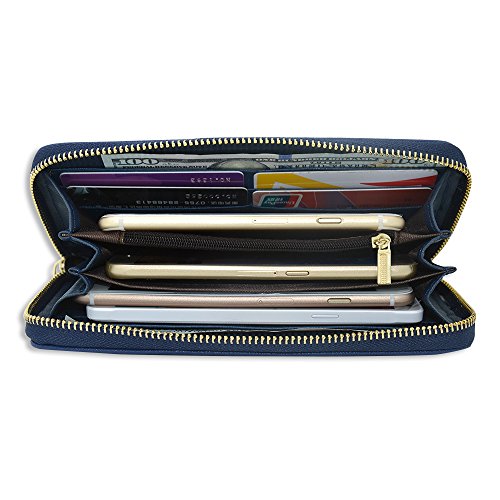 - Feature : It is made of high quality soft PU leather which is durable and pretty. It is designed by oblique texture / Dimension: 8.0. x 4.1 x 1.2 inches (L x W x H) / Compatibility: Suitable for Apple iPhone 6 (4.7) iPhone 6 Plus (5.5), 5/5S/5C, Samsung Galaxy S6 S5 S4 S3 Note 4, 3, 2, HTC and all other cellphone, money, ID card, credit card, keys, and other small stuffs / This super convenient bag can be used as a handbag, clutch bag, wallet bag, high-qualified hardware parts makes this wallet bag noble and the unique design highlight feminine elegance / Great zipper bag, it is precise and multi-function designed with 3 separate pouches, 8 card slots, 2 cash/receipts slots, outside Zipper is made by Genuine Copper. Best organizer for women