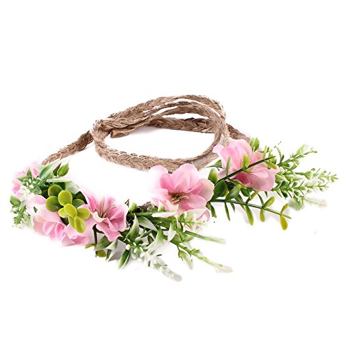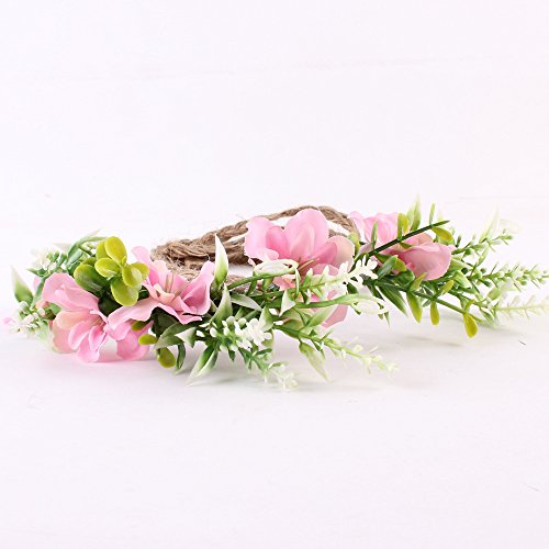 Tieback Flower Crown Flower Headband Baby Girl Toddler Woodland Green Leaf Floral Crown Wreath (Pink)