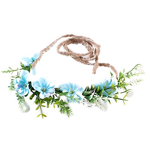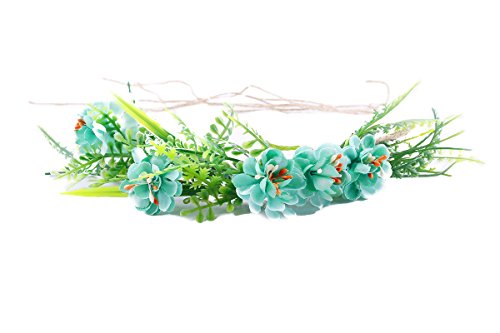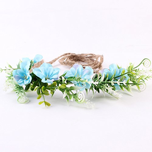 Tieback Flower Crown Flower Headband Baby Girl Toddler Woodland Green Leaf Floral Crown Wreath (Blue)