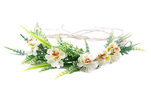 Tieback Flower Crown Flower Headband Baby Girl Toddler Woodland Green Leaf Floral Crown Wreath (White)