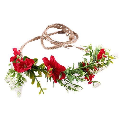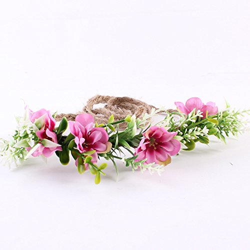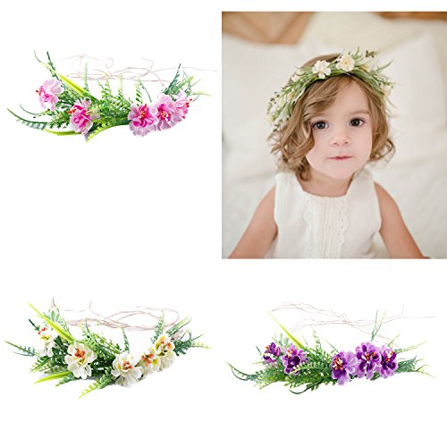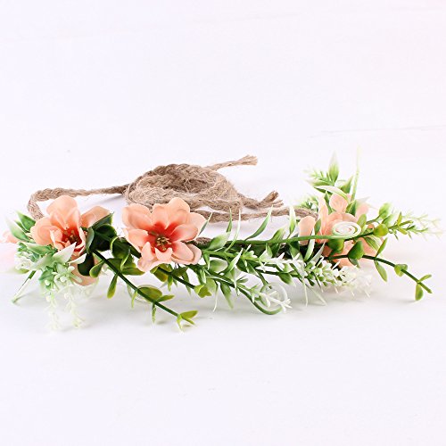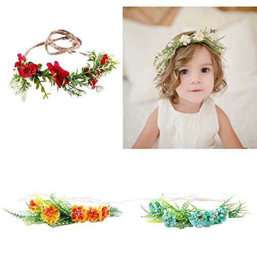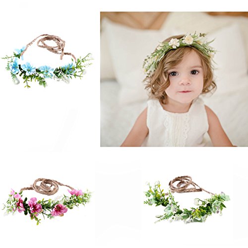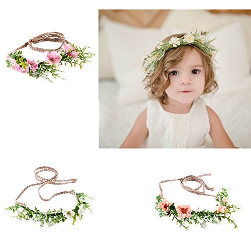 Tieback Flower Crown Flower Headband Baby Girl Toddler Woodland Green Leaf Floral Crown Wreath (3 Color Flower-C)
