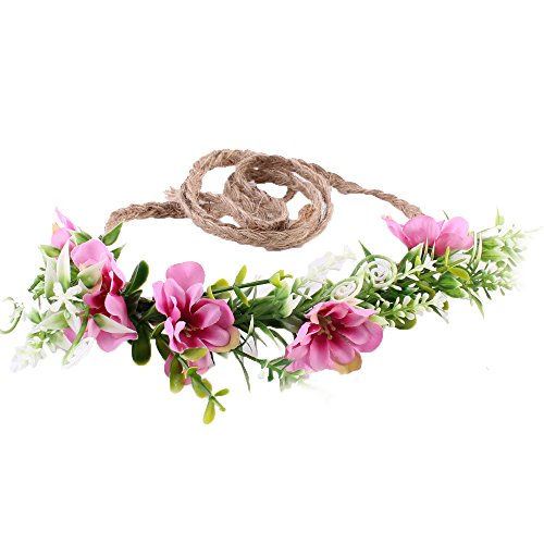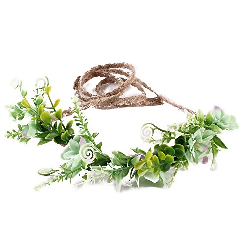 Tieback Flower Crown Flower Headband Baby Girl Toddler Woodland Green Leaf Floral Crown Wreath (3 Color Flower-B)