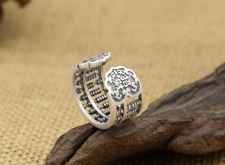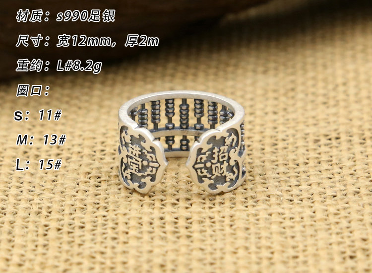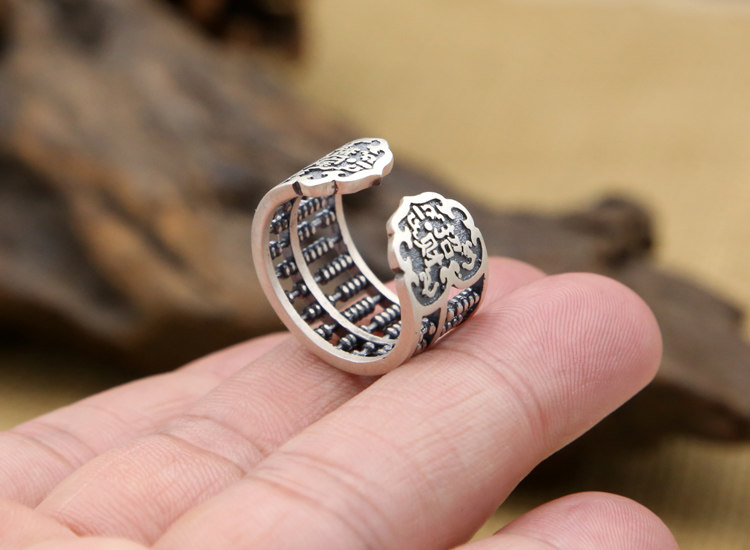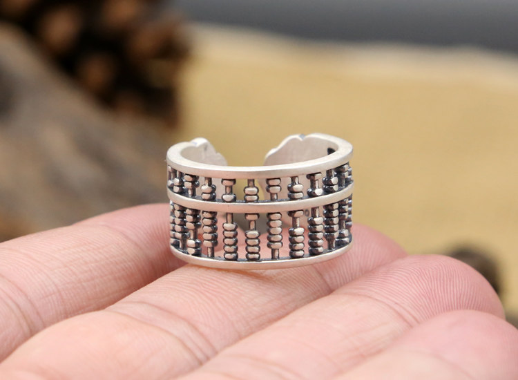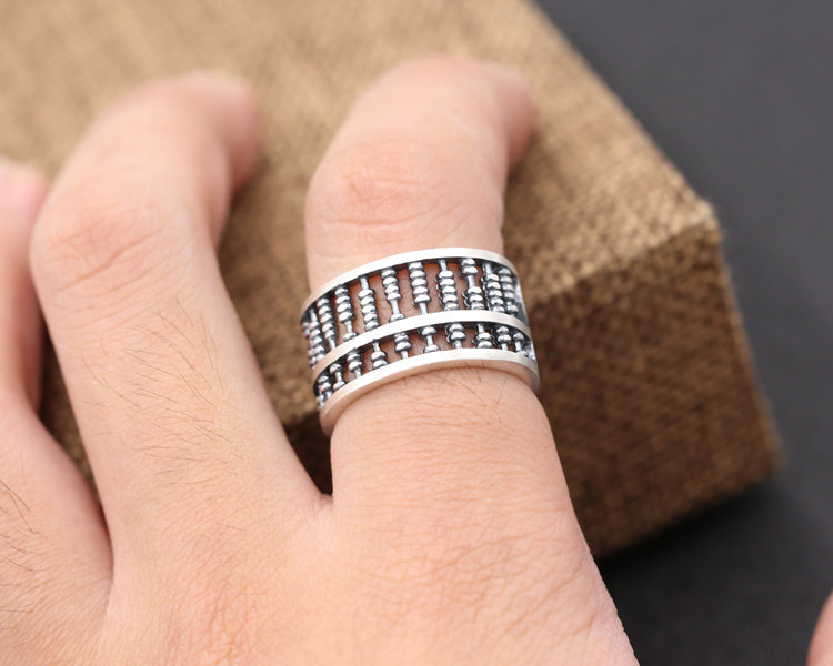 足银S990纯银泰银 复古创意算盘珠子个性男女开口戒指 流行新款戒