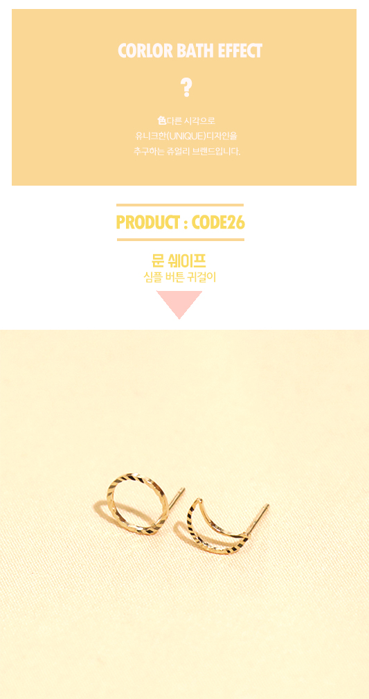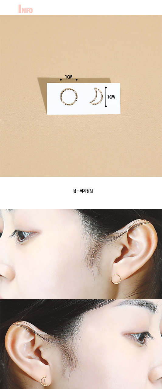 안녕하세요. 컬러배스입니다! <문 쉐이프>귀걸이는 써지컬침으로 제작된 심플&버튼 귀걸이입니다. 상세 내용은 아래 이미지 페이지를 확인해주세요.