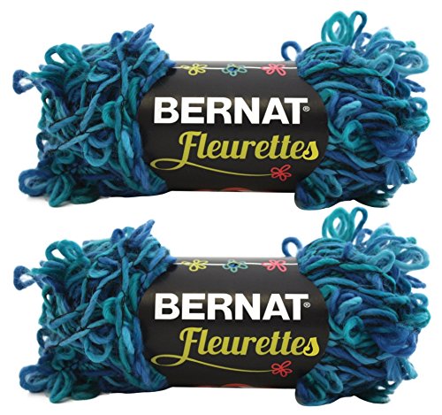 Bernat Bulk Buy Fleurettes Acrylic Yarn ~ 3.5 oz. Skeins (2-Pack, Blue Grotto #40134)