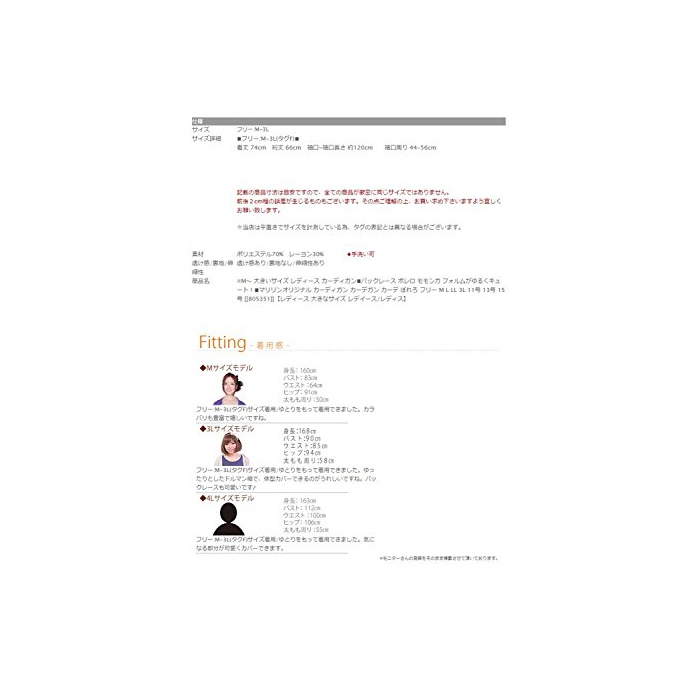 원본상품명: (ハッピマリリン)A HAPPY MARILYN ふんわり ゆったり M~3L バックレス ボレロ モモンガ フォルム カディガン 長袖 大きいサイズ レディス 型カバ 805351