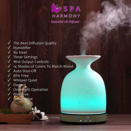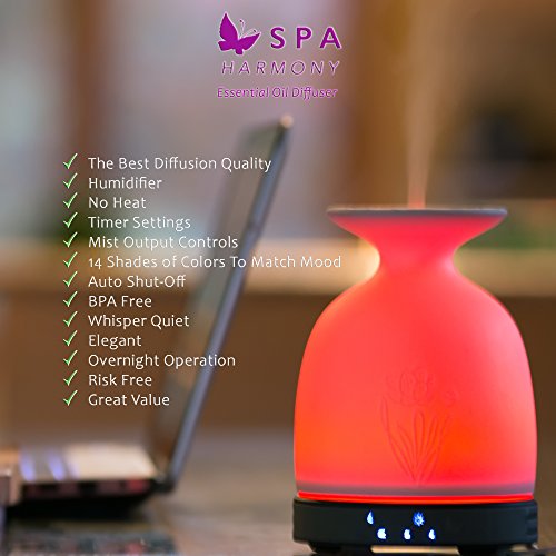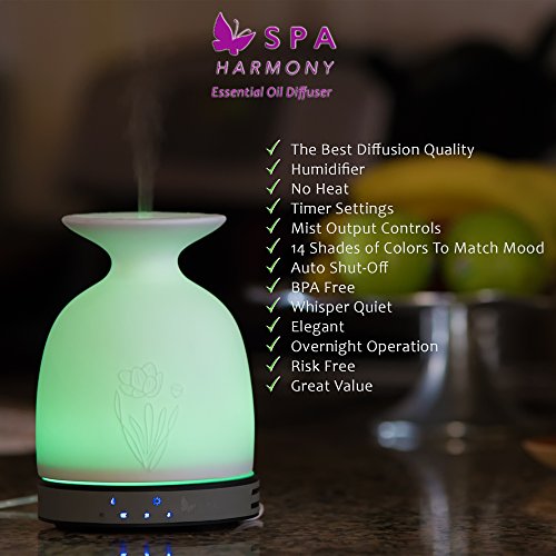 【THERAPEUTIC AROMATHERAPY AT YOUR FINGERTIPS】:SPAharmony cool mist 2.4 MHz diffusers are designed to retain purity and essence of your precious essential oils. Relax, Rejuvenate, create a soothing atmosphere, beautifying and moisturizing skin anytime.