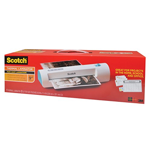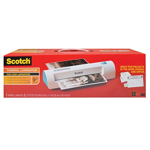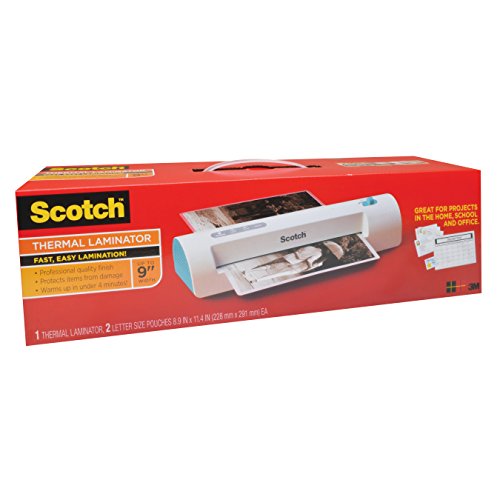 New slim design now warms up 2X faster! Ready in under 4 minutes and laminates one page per minute! For items up to 9 inches wide. Compact design is easy to carry and easy to store while providing the 3M quality you have come to expect from Scotch laminating products. Scotch Thermal Laminator protects documents you handle frequently. This thermal laminator provides a professional quality finish and protects items from damage. With a 3-4 minute warm up time, quick laminating speed, a compact design, it's great for projects in the home, school and office.Feature