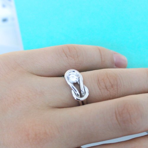 - Title : Sterling Silver & Diamond Imitation CZ Cubic Zirconia Love Knot Ring