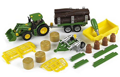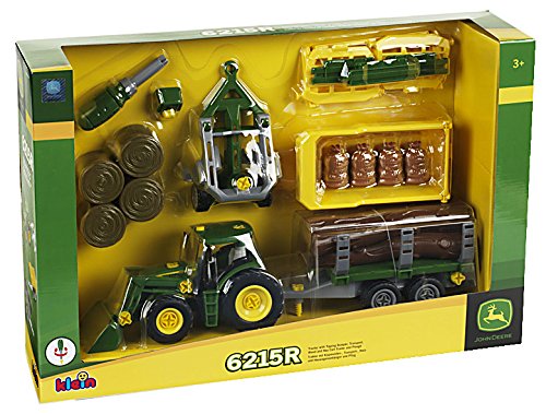 -. Title : Theo Klein 3907 - Bau- und Konstruktionsspielzeug - John Deere Traktor mit Kippmulden, Transport, Holz- und Heuwagenanhänger und P