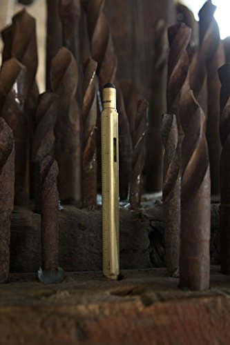 -. Title : TROIKA CONSTRUCTION SQUARE – PIP24/AB – Multitasking ballpoint pen – for architects– centimetre-/inch ruler – spirit level – brass– matt – polished – antique brass – TROIKA-original