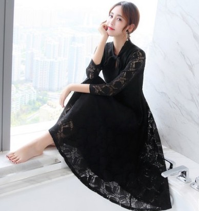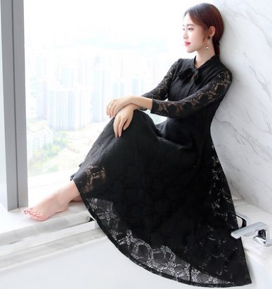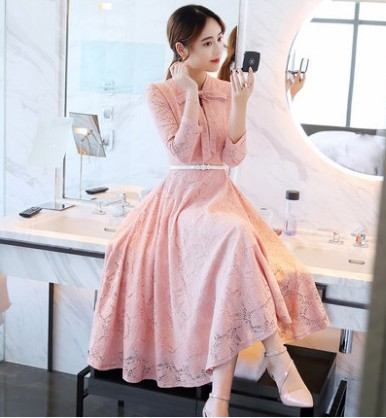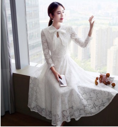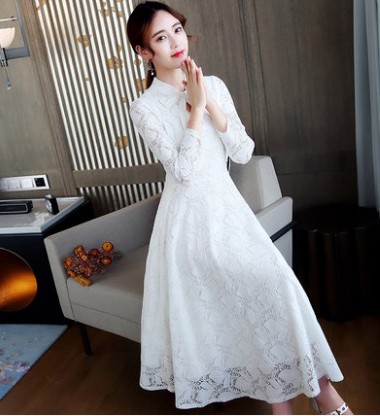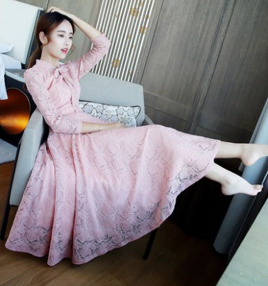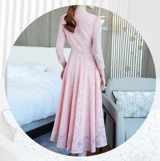 エレガントで上品なレースのロングワンピース。